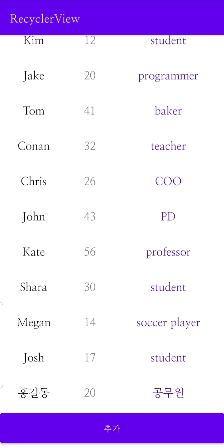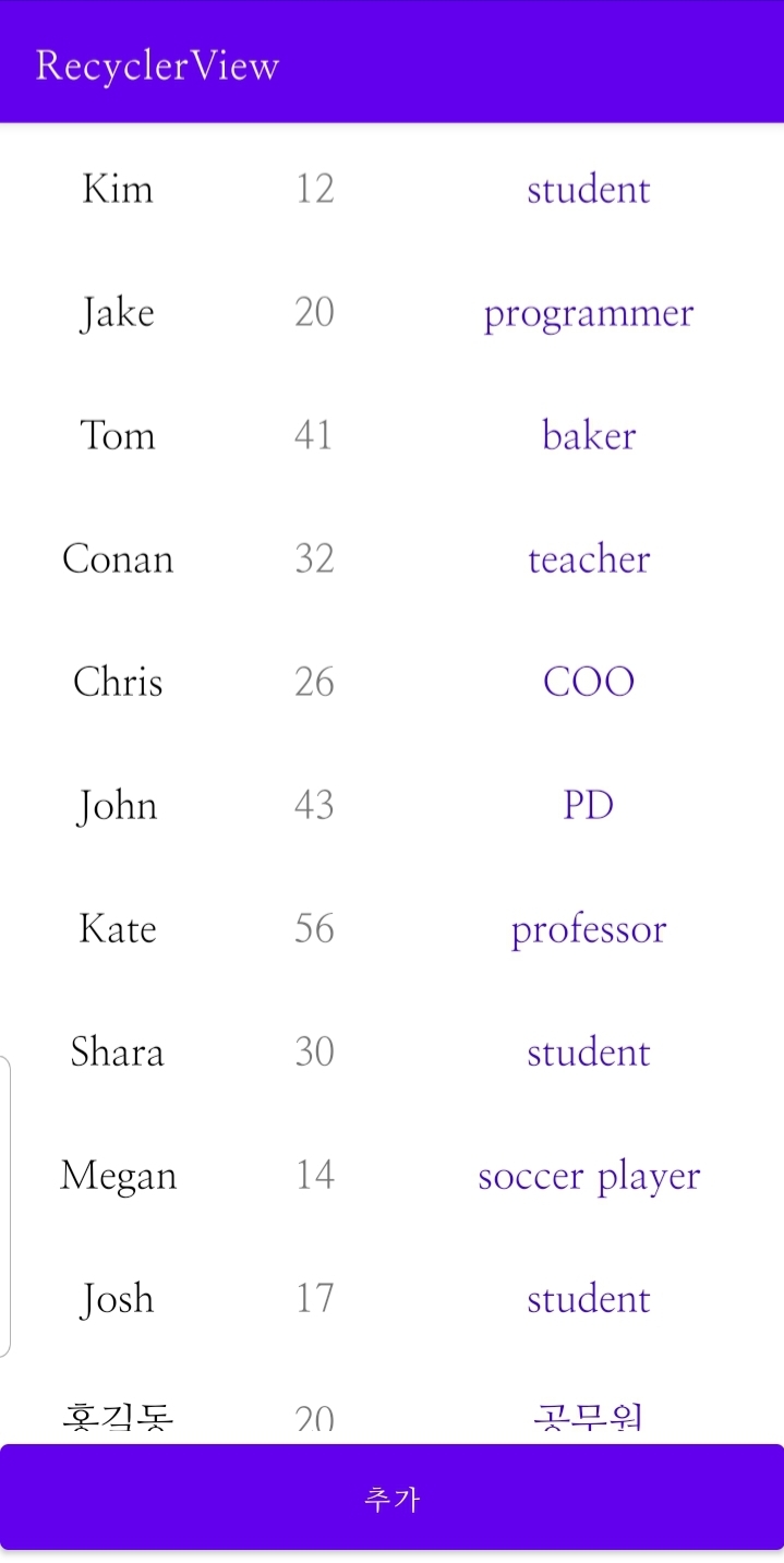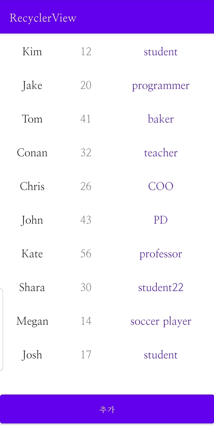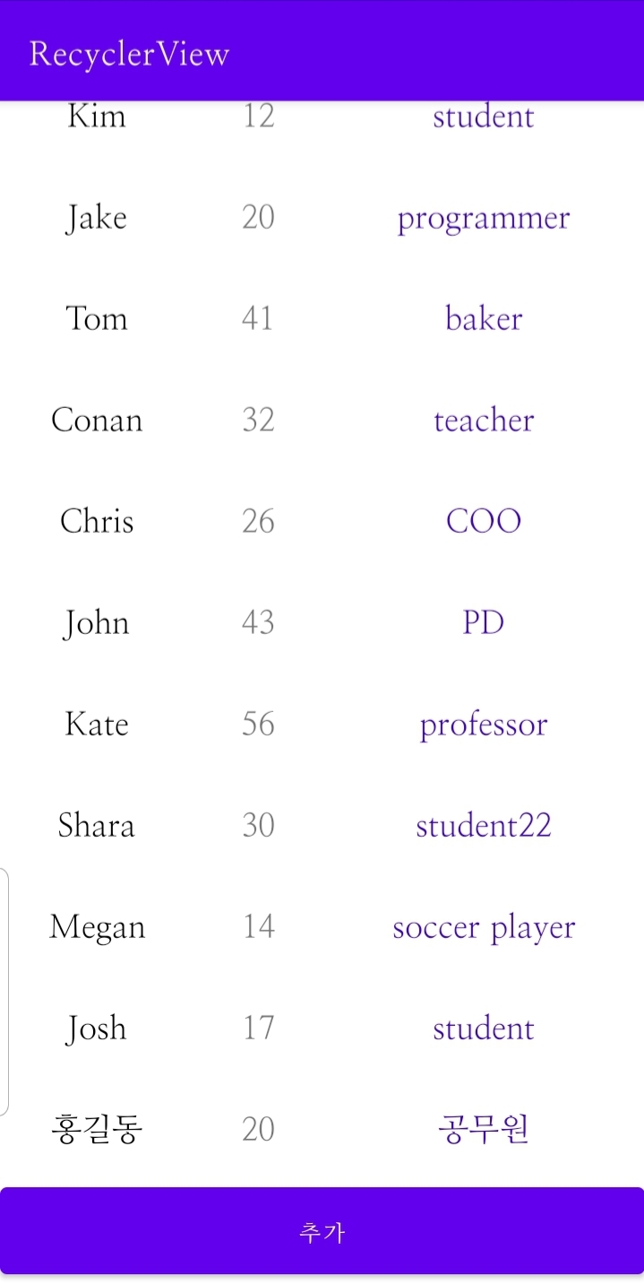 ⚠️ 2021.01.07에 작성된 글입니다 ⚠️ CRUD 리사이클러뷰 아이템을 추가, 수정, 삭제할 수 있다. CRUD란 create(생성), read(조회), update(수정), delete(삭제)를 뜻한다. 철자 그대로 '씨알유디'라고 읽거나