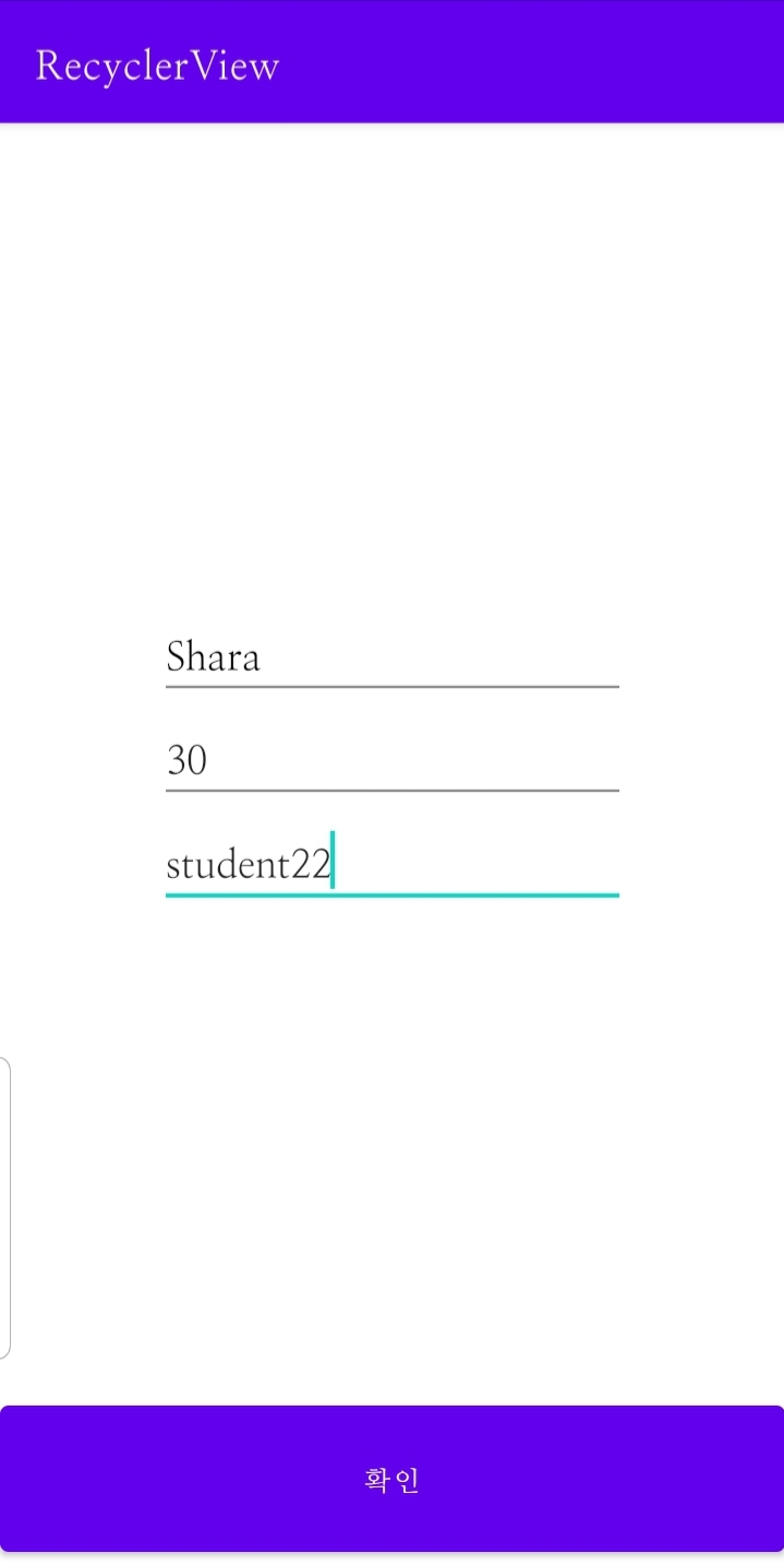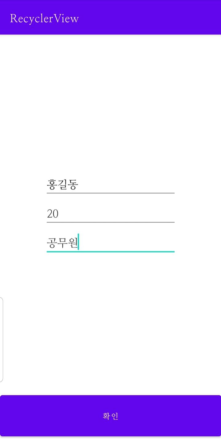 추가 액티비티에서 정보 입력 후 확인 버튼을 누르면 메인 액티비티로 이동한다.