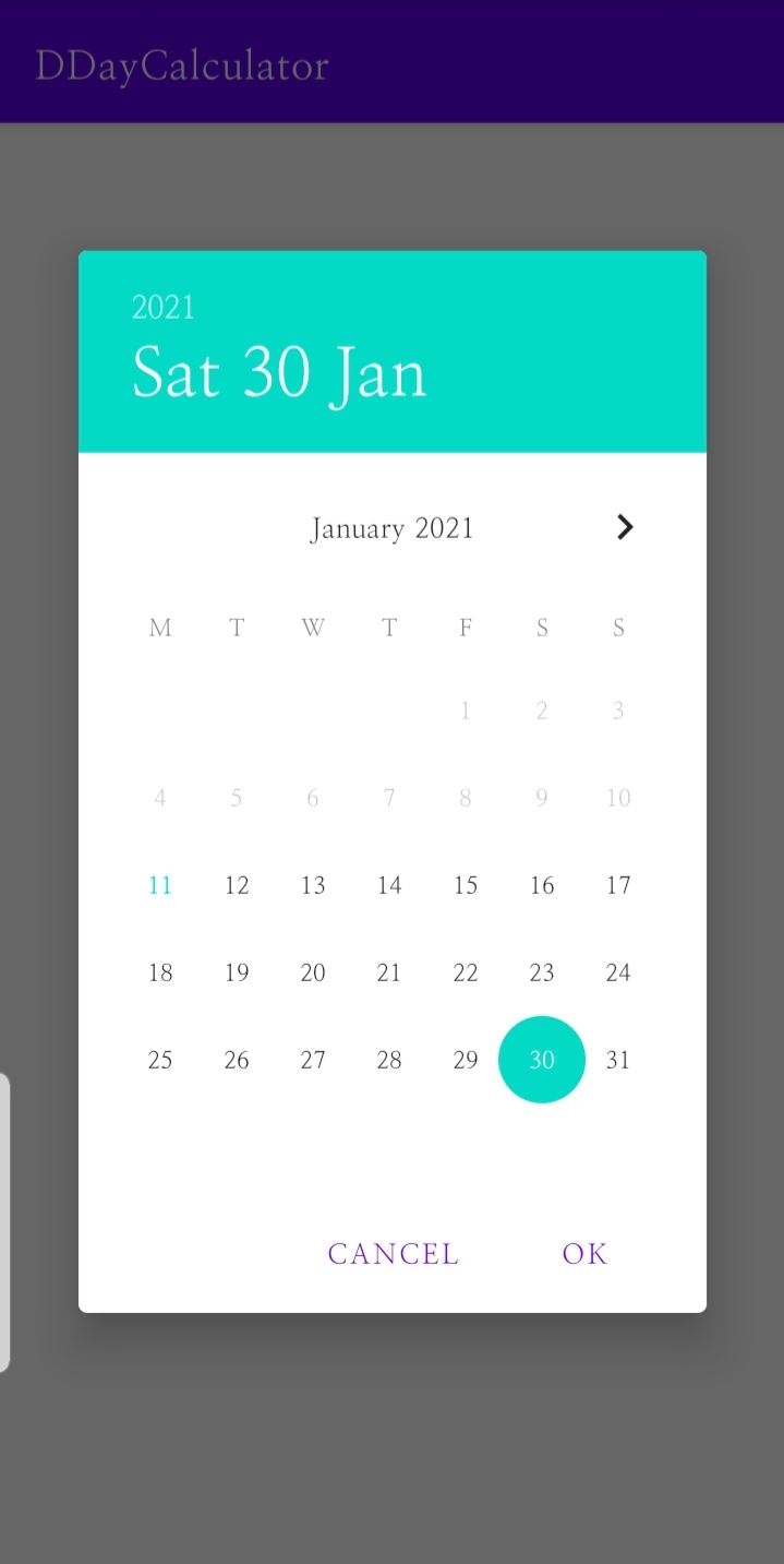 long dDay = selectDate - nowDate; // 선택날짜 기준 선택 날짜와 현재 차이, 오늘로부터 며칠 남았는지