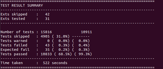 실패한 테스트가 있을 경우 해당 테스트의 목록과 아래와 같은 메시지를 보여주는데, 구글링(QnA글1 / QnA글2 / 블로그글)을 해보아도 해당 문제에 대한 특별한 대체방법이 없었다. 이유 또한 알지 못했고, 그저 무시하고 넘어가라는 글과 답변이 있어 별다른 액션을 하지 않고 make install을 진행했다. 혹시 몰라 Y를 입력해 해당 레포트를 보내긴 하였다.