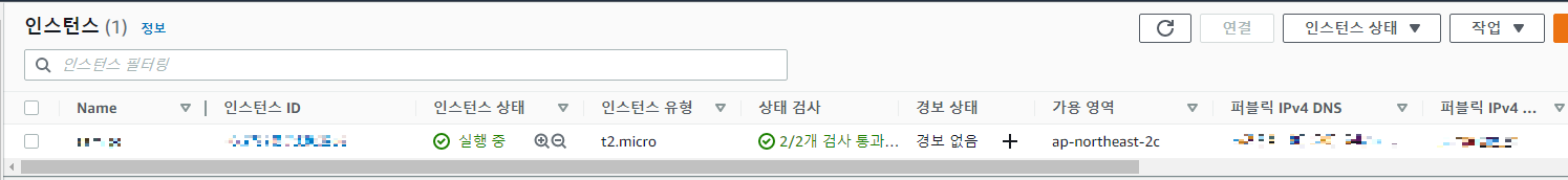 aws 인스턴스를 생성하면 다음과 같이 Management Console(인스턴스>인스턴스)에서 인스턴스의 ip를 확인할 수 있다.